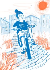 Esta es una publicación que tiene dos portadas, dos recorridos, dos personajes, dos historias que se encuentran (¿de casualidad, acaso?) Una oda a las bicicletas, a la libertad de andar en bici, al disfrute de todo eso que puede pasar cuando salis a dar una vuelta.