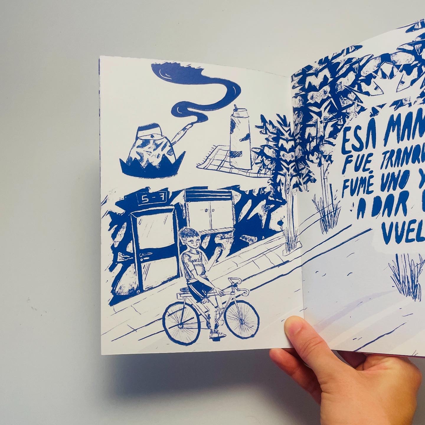 Esta es una publicación que tiene dos portadas, dos recorridos, dos personajes, dos historias que se encuentran (¿de casualidad, acaso?) Una oda a las bicicletas, a la libertad de andar en bici, al disfrute de todo eso que puede pasar cuando salis a dar una vuelta.